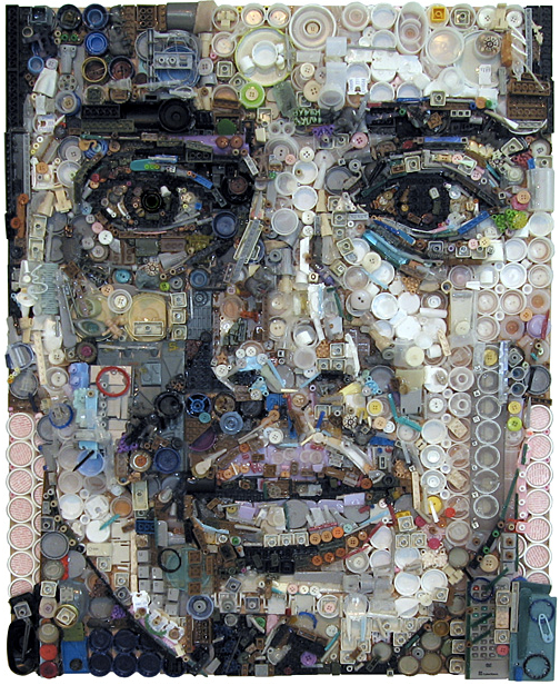 This is exactly what Zac Freeman does, and he makes amazing portraits. In 1999, Zac started collecting junk, found objects and glued them to wooden substrate to create images of unknown people. His art work is made on large pieces (28" X 35" or 70cm X 90cm).